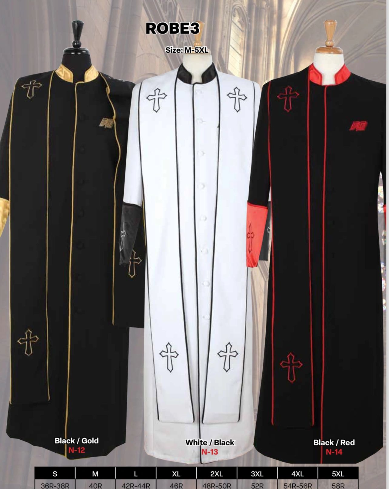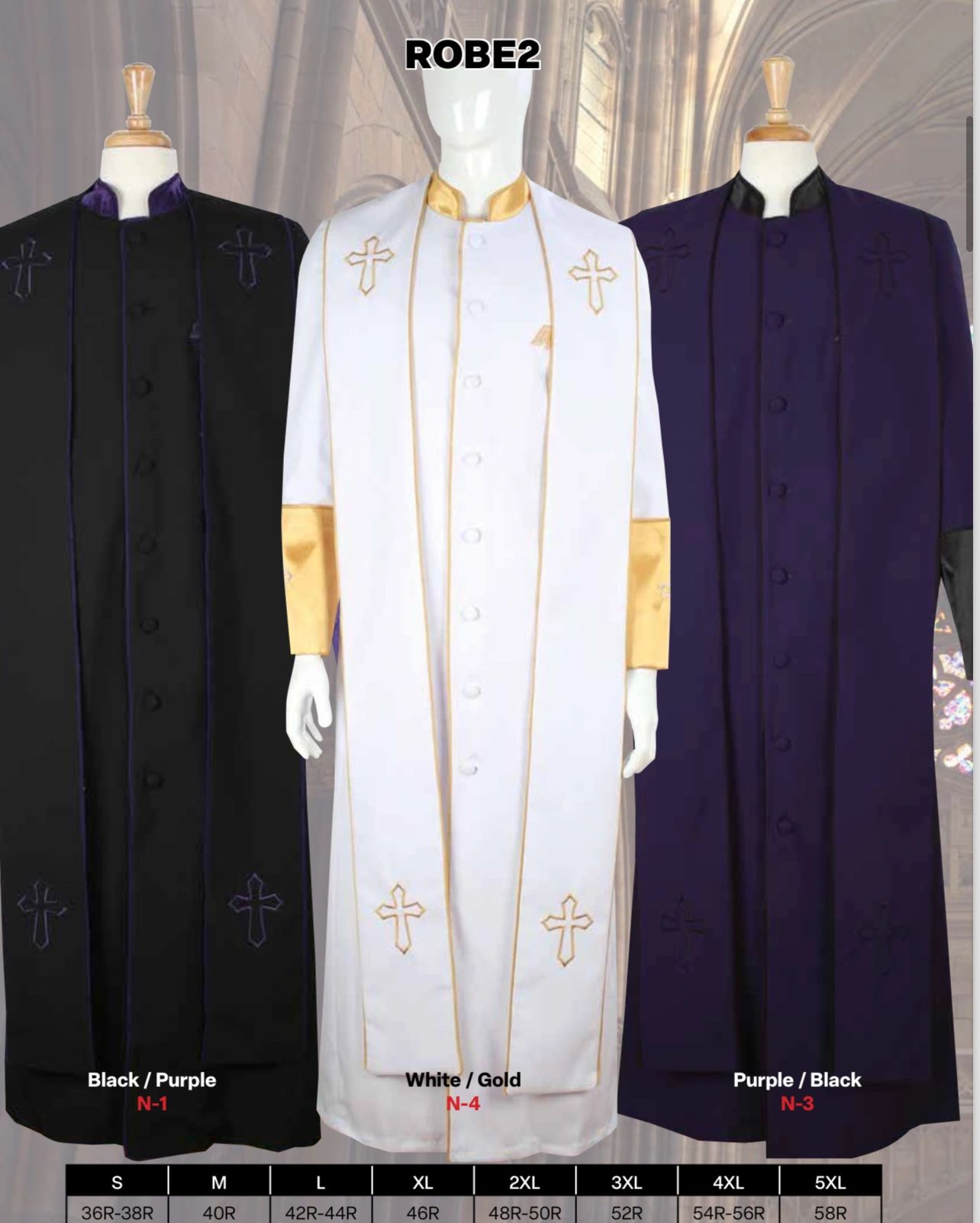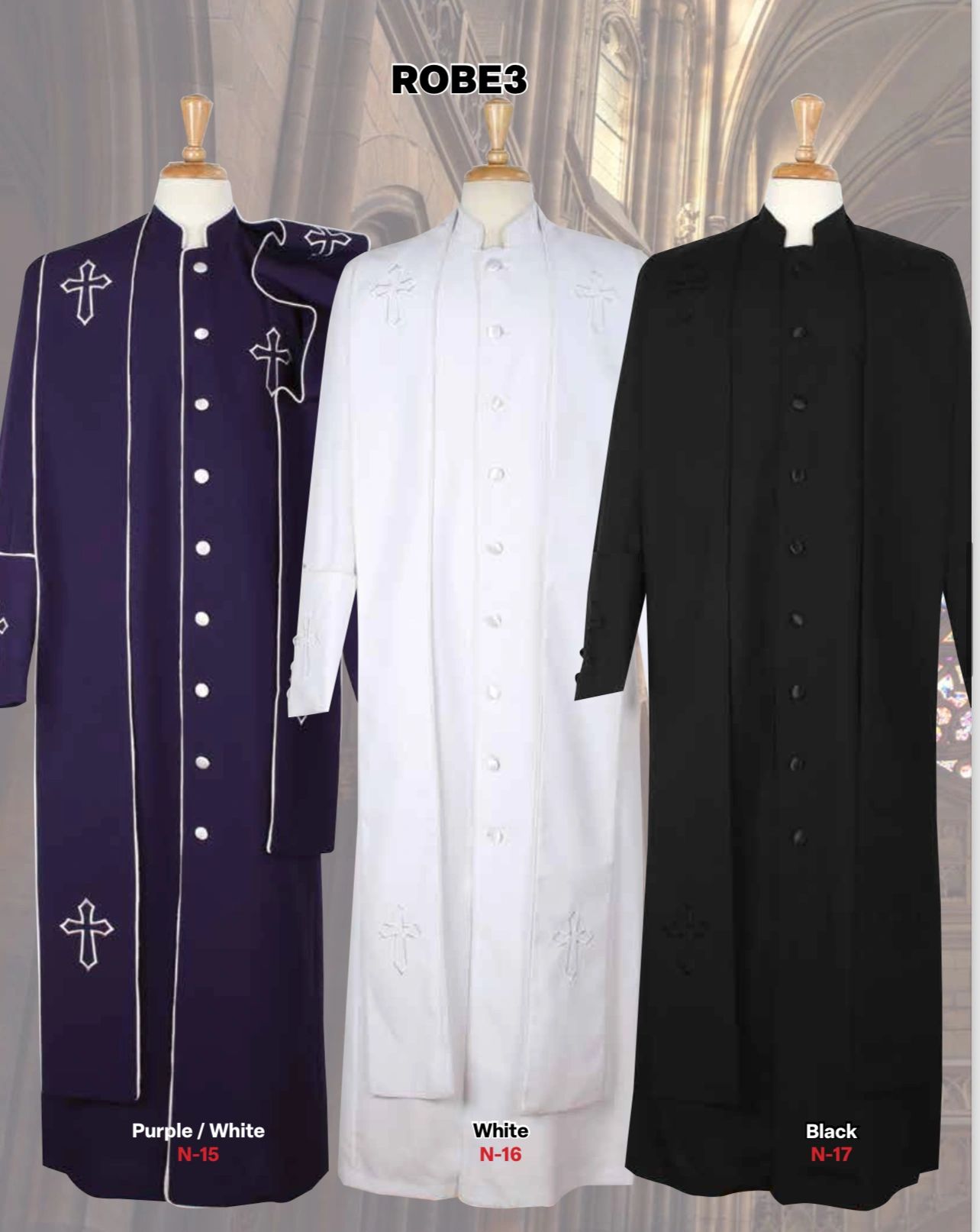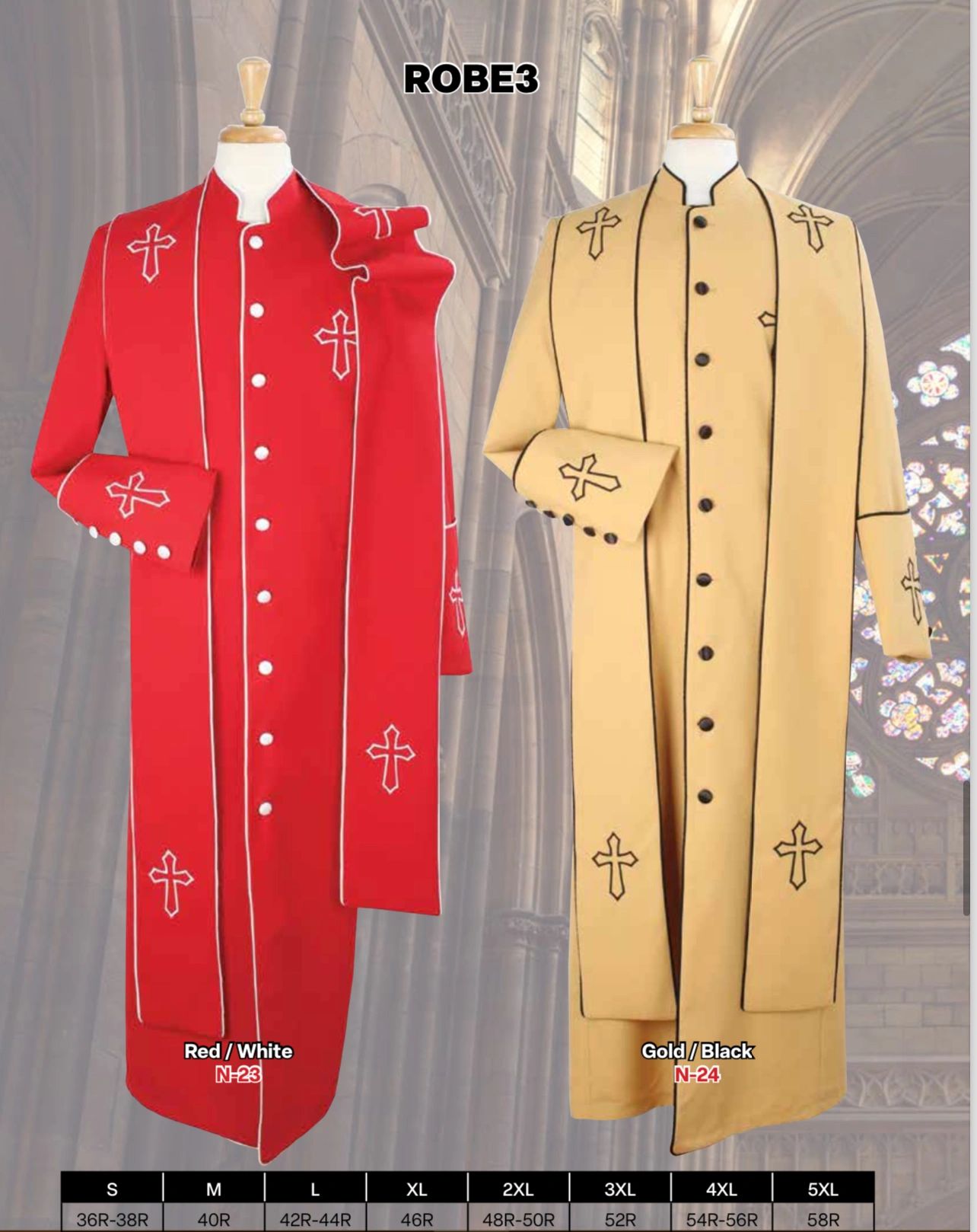 Limited sizes available for clergy wear